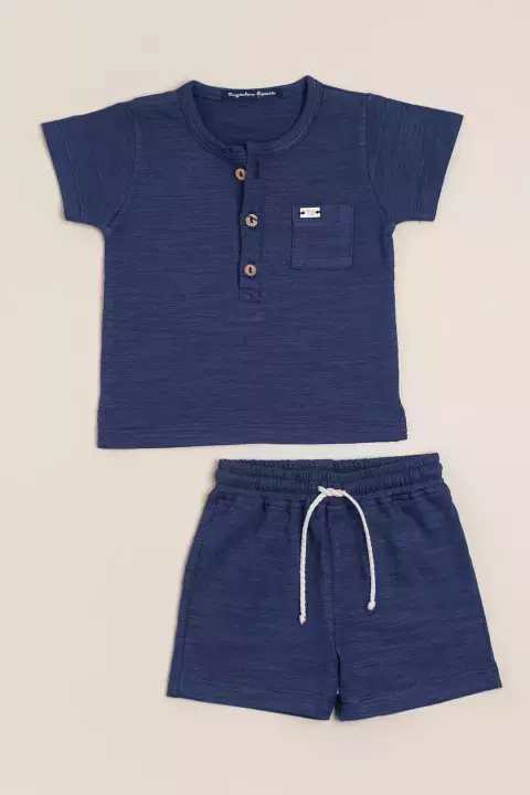 Conjunto de algodón compuesto por una remera de manga corta y un short. Color azul. Magdalena Espósito.